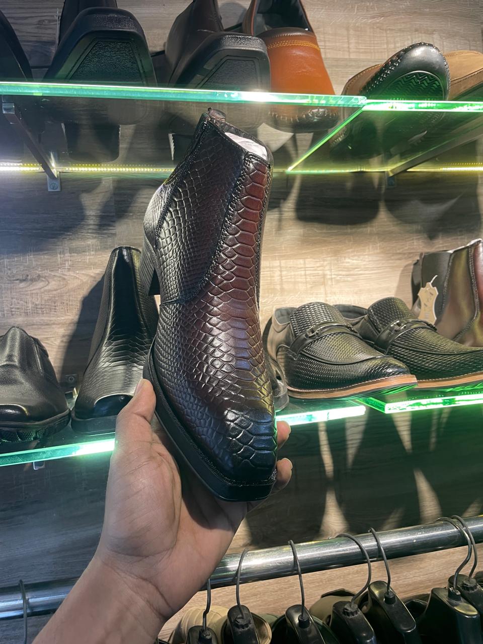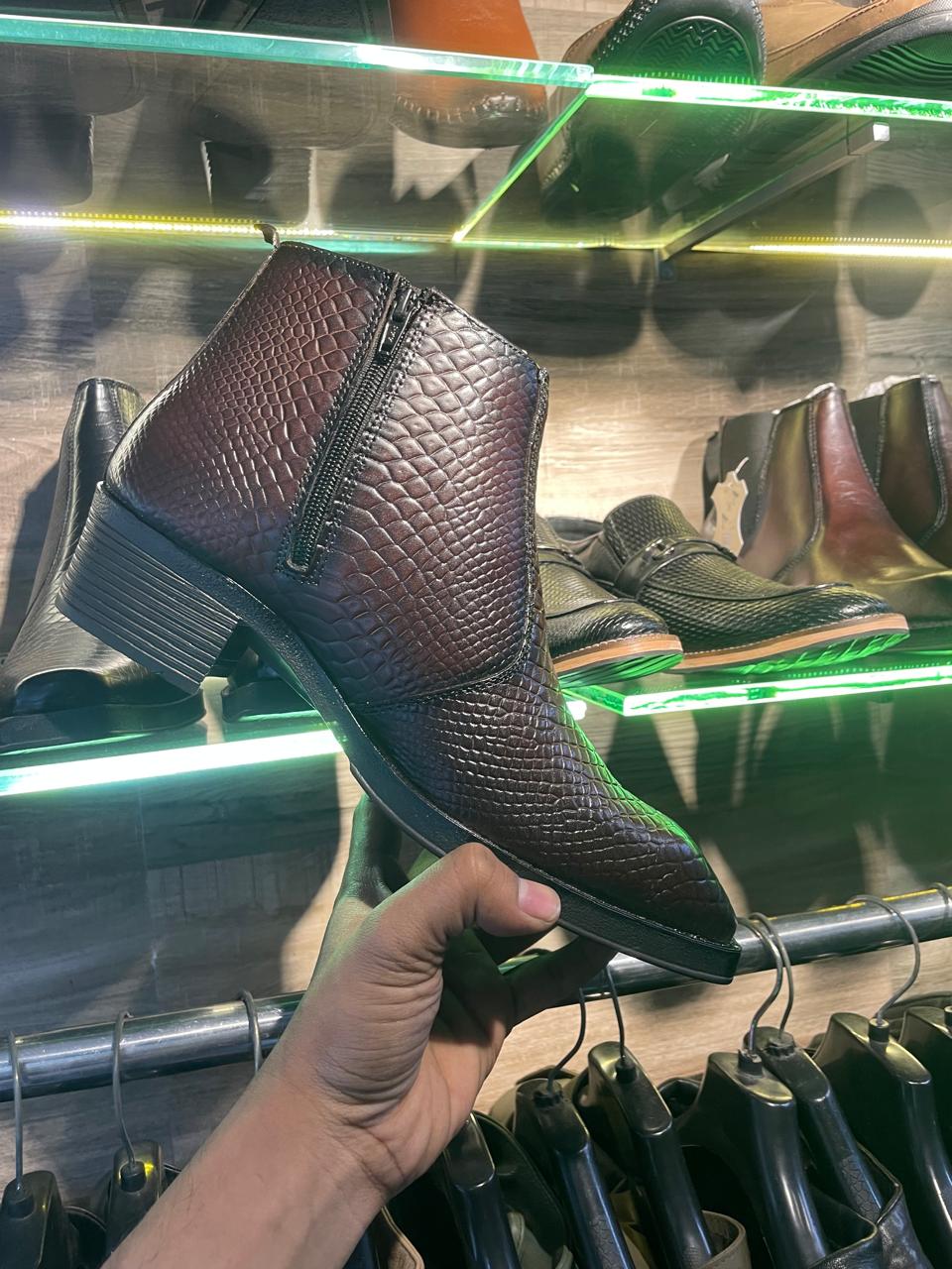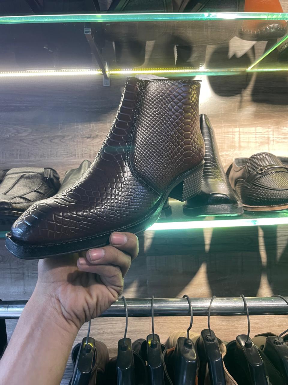 Handmade Men's Crocodile Embossed Leather Boot, Brown Bit Dress Shoe, – leatherthirst