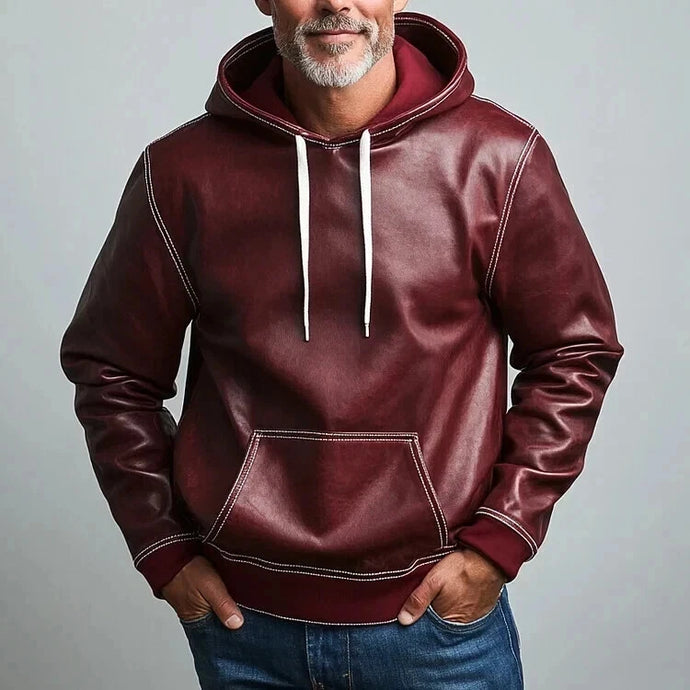 Men's Maroon Hooded Bomber Leather Jacket. Real Soft Sheepskin Leather Hoody XL.