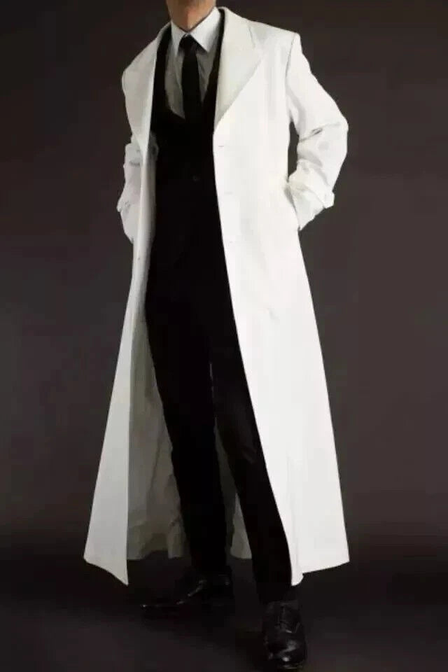 A men's white genuine leather long coat is a versatile piece that can be worn for a variety of occasions, from business meetings and formal events to casual dinners and nights out on the town. The Overcoat can be dressed up or down depending on the occasion, making it a great addition to any wardrobe. Overall, this blazer is a timeless and classic piece that is sure to last for years to come.