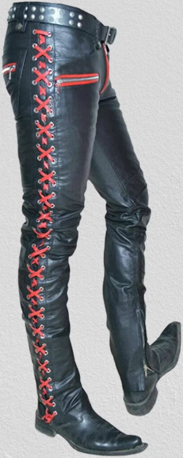 Overall, men's leather pants with side lace combine the timeless appeal of leather with contemporary detailing, making them a stylish choice for those who want to stand out and make a fashion statement.